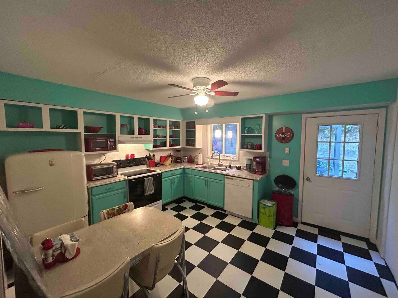 It had been decades since I had experienced a waterbed, so it was great fun to give it another try! For those who prefer a standard bed, Dan’s also got a king size one. Add in a jacuzzi and a jukebox and you’re sure to have a groovy time!