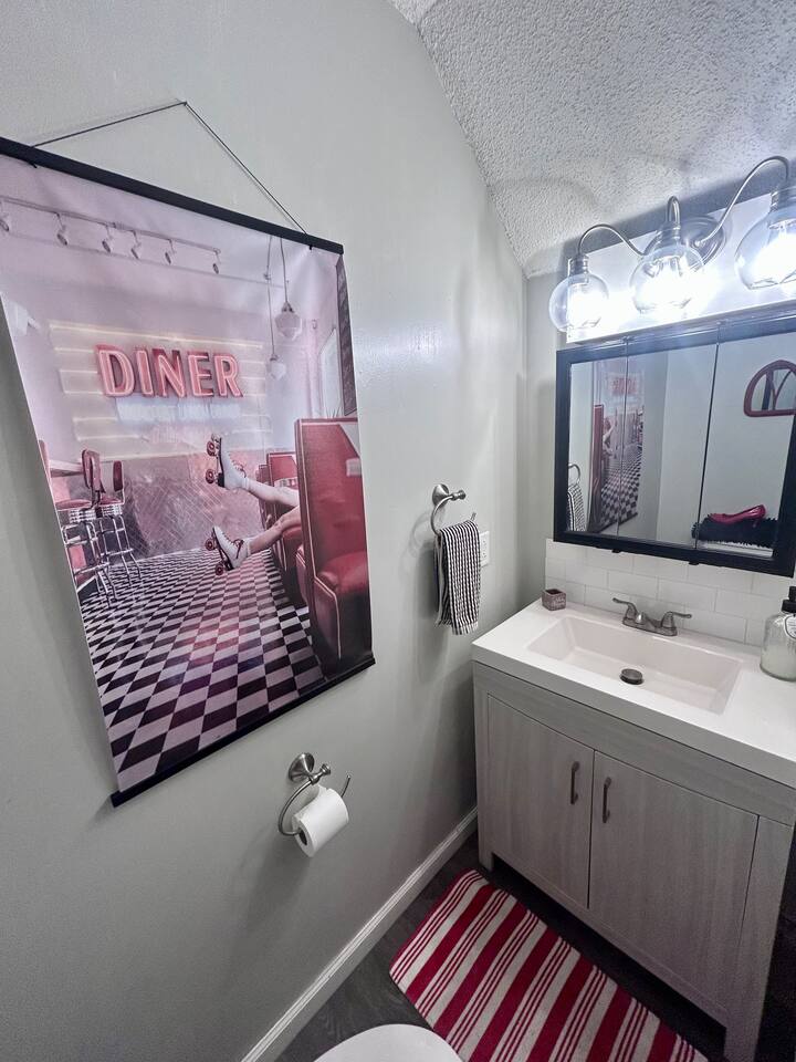 Welcome to the 'Hot Tub time Capsule' 🕺🎶 - Immerse yourself in '60s and '70s nostalgia. Enjoy jukebox jams, a hippy waterbed, and a possible hot tub time machine. Book now for a groovy adventure! ✌️🌟🍭 Relive the iconic moments of the past, surrounded by vibrant colors and retro décor. Set the mood with vintage tunes, and drift into dreamland on a comfy hippy waterbed or a soak in your private hot tub. It's not just a stay; it's a journey back in time.